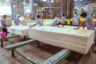 Is the process of applying glue to the layers of plywood core, face, and back. Glue will be tested in the laboratory to ensure that the glue used is standard or not. The first glue process is done for the core layer and then the second glue will be continued after the core through the Sanding Calibration process. The second glue process, the core back layer is glued to the face layer. Depending on the thickness of the plywood to beproduced, the glue process can occur more than two times. Mil always uses international quality plywood glue, produced directly by PAI (Pamolite Adhesive Industry).