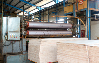 Is a process after the core layer and back through the glue process. The cold press process lasts at least 30 minutes, depending on glue type and the thickness level.